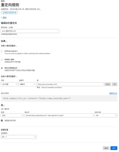 在Cloudflare进入到对应网站的控制面板,在左侧的菜单下找到规则 -> 重定向规则,然后创建规则。
